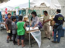 7月28日(土)第二日目:昨日に続き天候に恵まれかき氷を食べてもらえる人が増えそうな予感がしました。氷の量も昨日の1.5倍仕入万全の体制で臨みました。おかげさまで子供達、大人の方の入場者は昨日よりも多く感じられ、沢山の方々にかき氷を食べてもらいました。(約900杯)